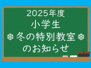 小学生対象の冬休み勉強会のご案内です。 ★期間★ 12/25(木)~26(金) 1/5(月)~7(水) 計5日間、各9:00~11:00 ★費用★ 小1,2 3000円 小3,4 4000円 小5 […]